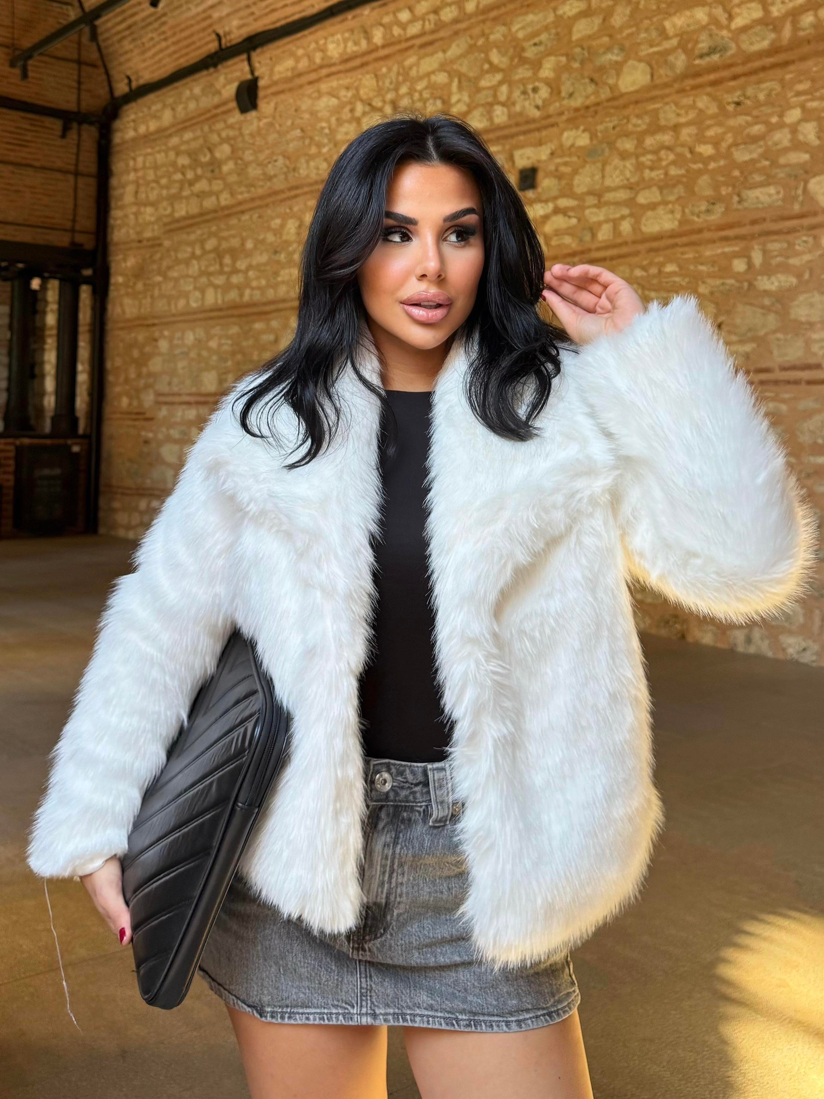 Eyfel Şal Yaka Kürk Kaban Beyaz (202405)