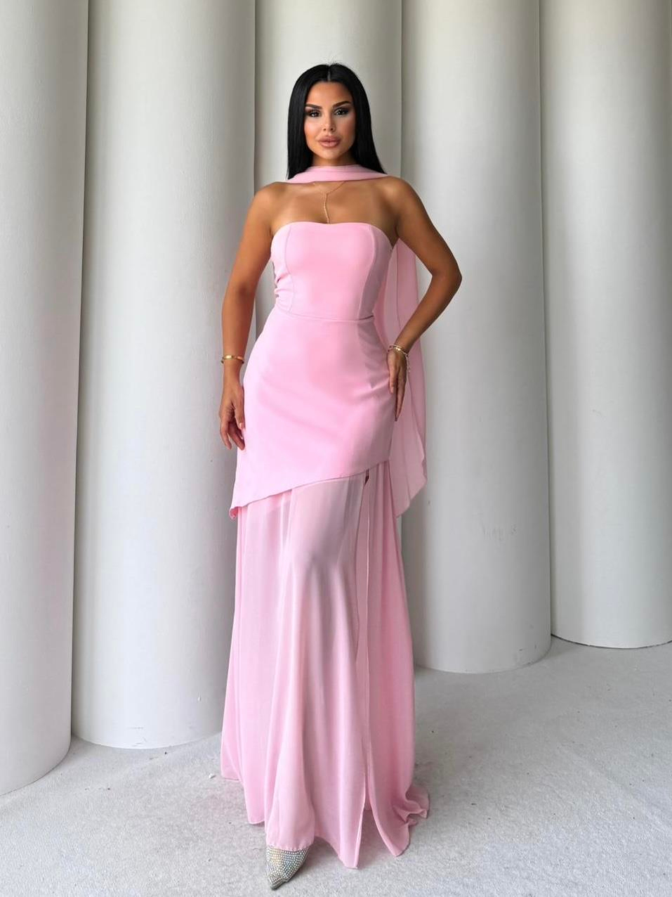 Girnes Uzun Elbise Pembe