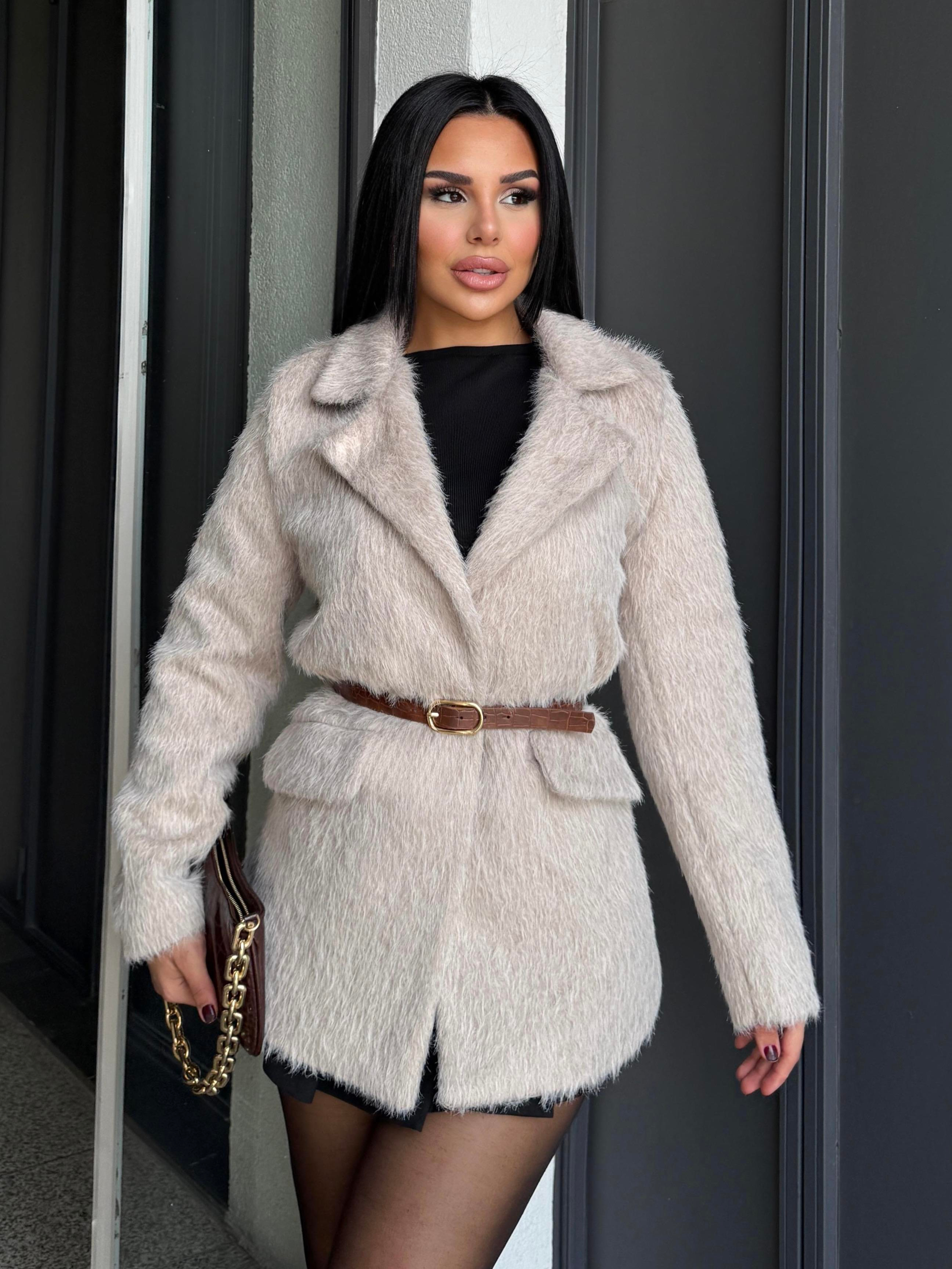 Hovard Kemer Detaylı Kaşe Kaban Bej