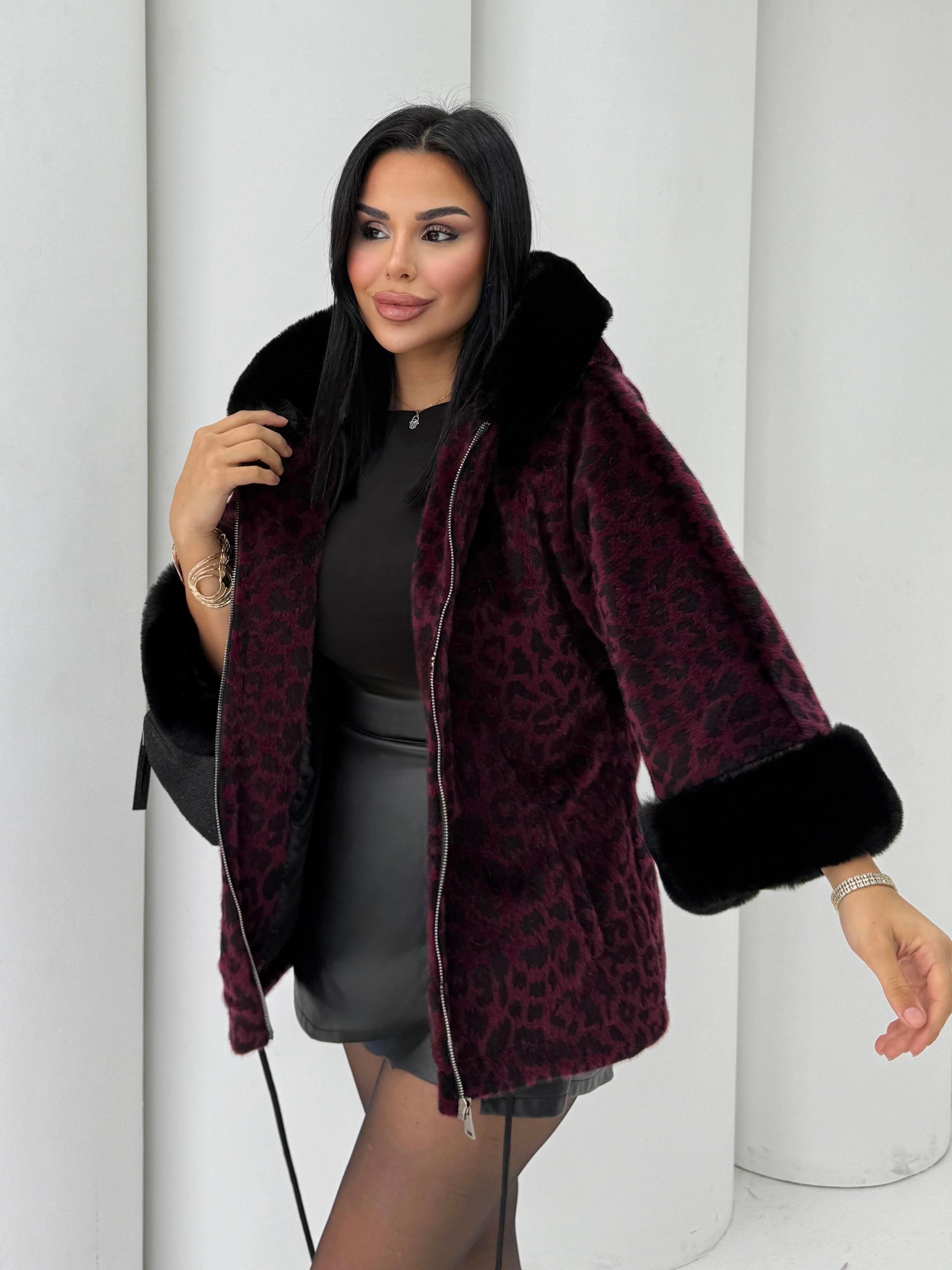 Ozina Leopar Desenli Kürk Bordo