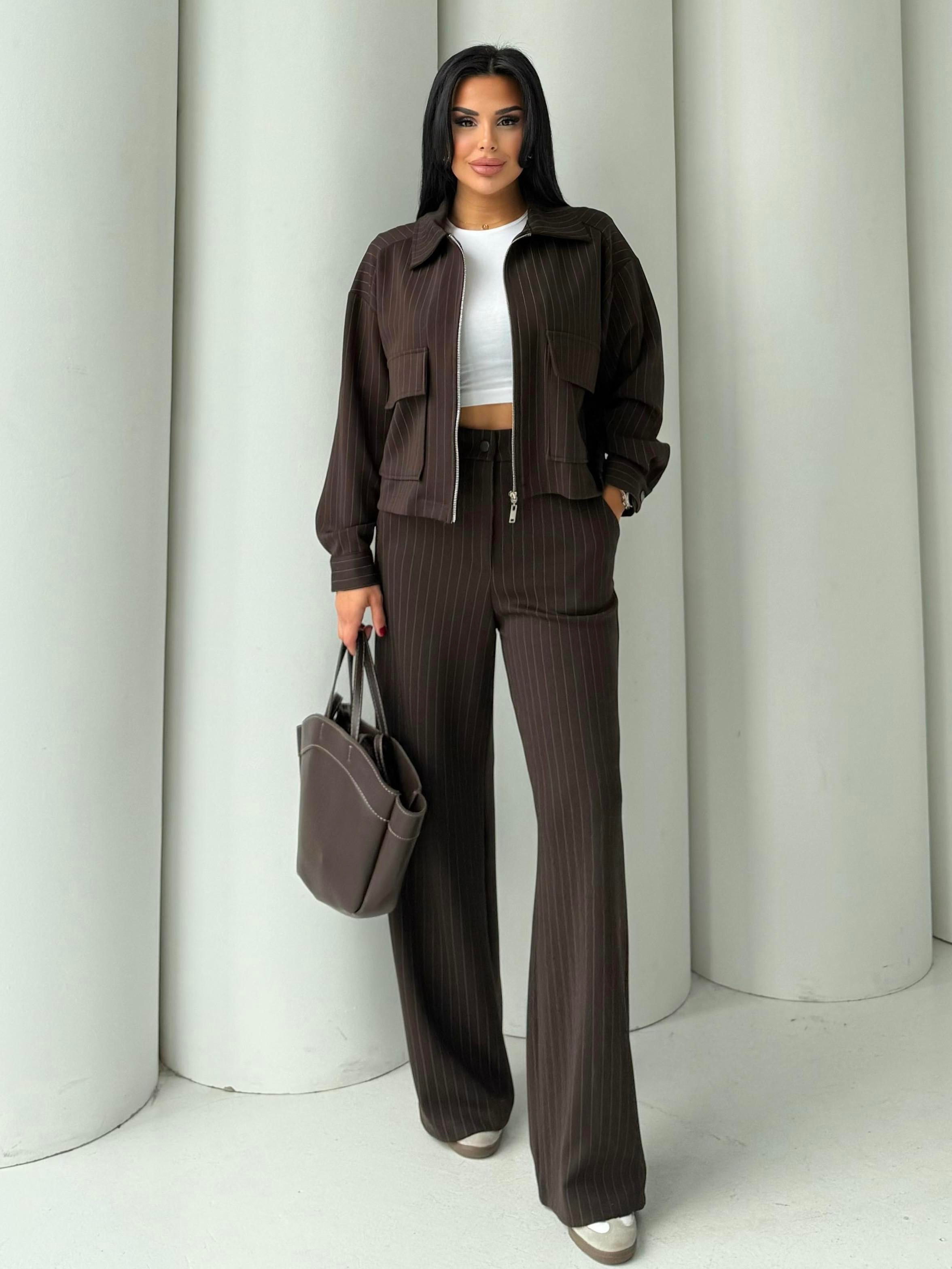 Verista Çizgili Takım Kahve